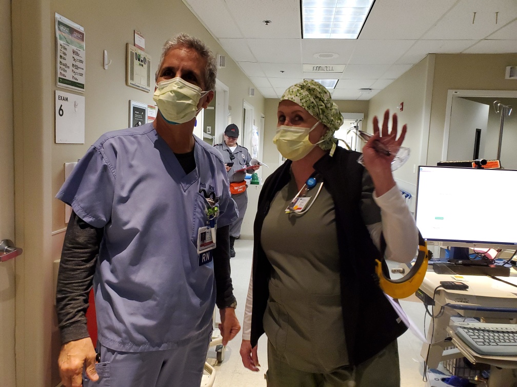 For me, I think that the most frustrating thing is having an assignment that has several PUIs or “Known Positives.” Having a one patient in isolation is difficult, but having 3 patients in isolation is even worse. Just having to don (put on) and doff (remove) PPE is an ordeal. And it must be done every time you enter and exit a room. It’s not that you put it on and wear it the entire shift. It’s only frustrating because sometimes there are coworkers who see and hear the call lights going off but don’t want to answer it because they would have to gown up, etc. I get it. I do. And there are times when’re are all busy, or when we all have isolation patients. I get frustrated when I come out of one room, only to be told, “Your patient in Room X wants something.” Aaaargh! I’ve only lost it once at work. I’m not one that publicly displays my emotions, so when I start losing it it’s for me to control my tears. My coworkers are great people. I work with an amazing group of people and I am grateful for all of them, but this has gotten to the best of us. We are all tired, stressed, worried.